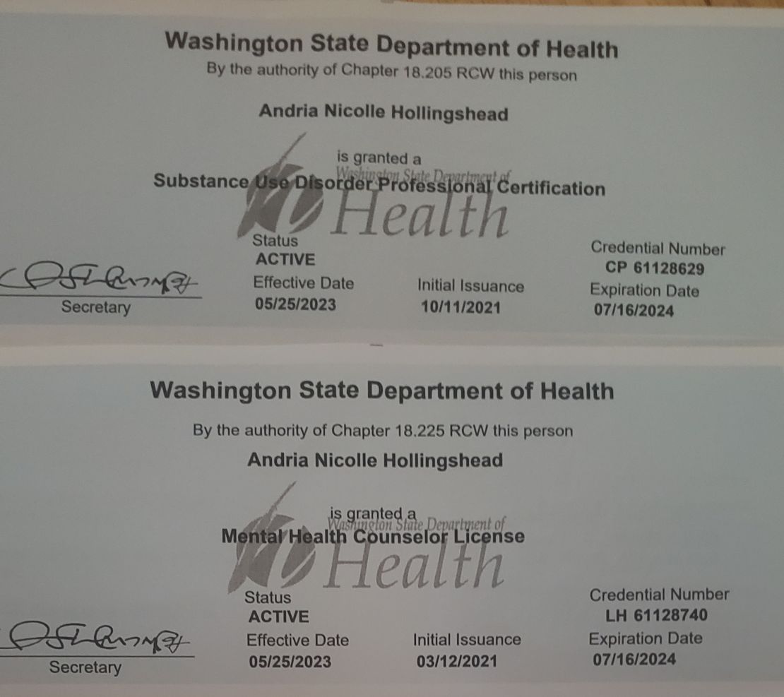 In addition to being a Certified trainer I am also a Licensed Mental Health Counselor and Licensed Addictions Counselor in Washington and Nebraska. I hold certifications as a Certified Trauma Therapist and Integrative Mental Health, DBT (Dialectical Behavior Therapy), CBT (Cognitive Behavior Therapy. I am also a Nationally Certified Counselor. I am formally trained in the top 3 trauma treatments; Prolonged Exposure, EMDR and Cognitive Processing Therapy.